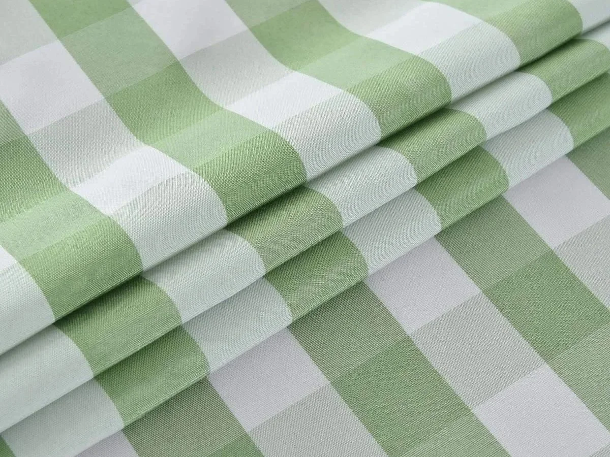 Description: Checkered, mint green + white rectangle tablecloth.